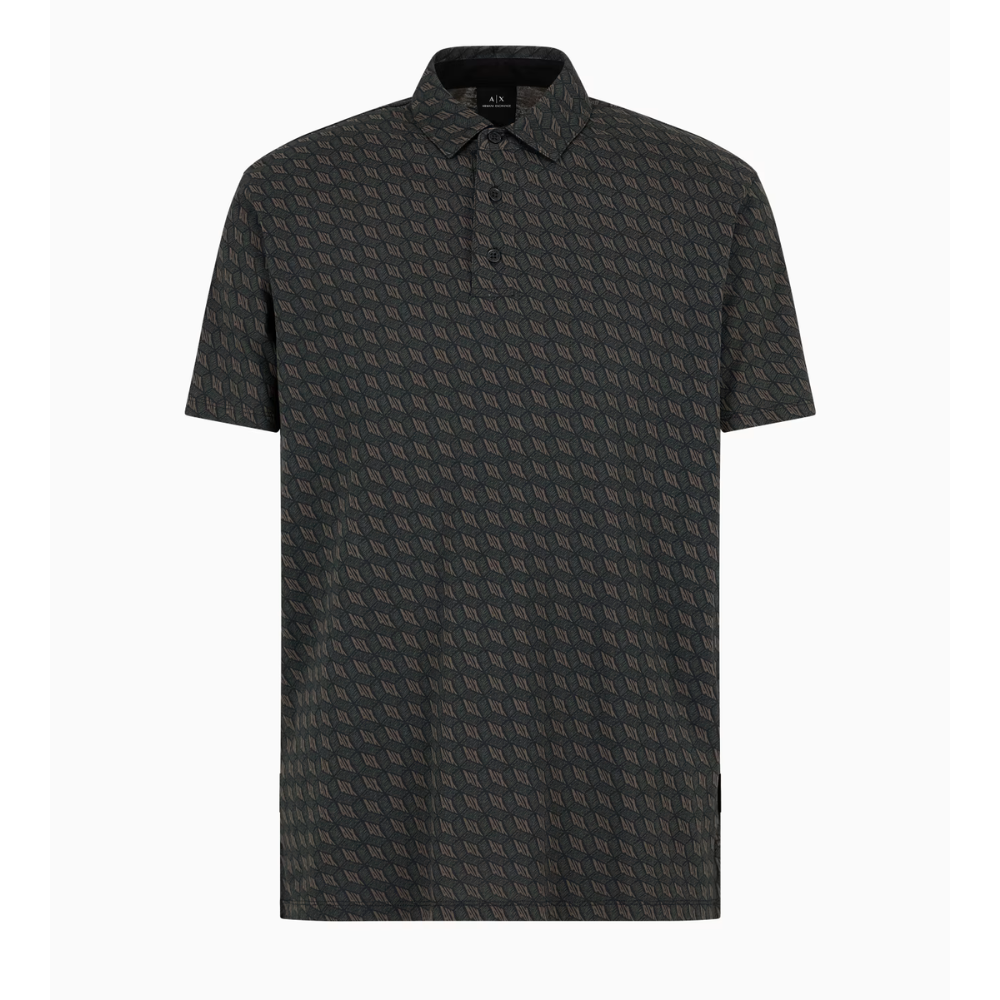 Regular fit polo shirt made of cotton pique with short sleeves and personalized with an allover pattern with contrasting logo. This item is part of the ASV selection because the fabric is made with certified sustainable or recycled material: a model that combines the A|X style with the brand's commitment to ever-increasing attention