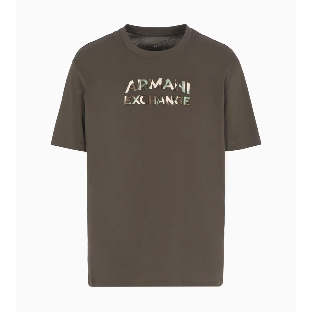 Regular fit T-shirt made of cotton jersey and personalized with a front print of the camouflage logo motif. This item is part of the ASV selection because the fabric is made with sustainable or certified recycled material: a model that combines the A|X style with the brand's commitment to ever-increasing attention