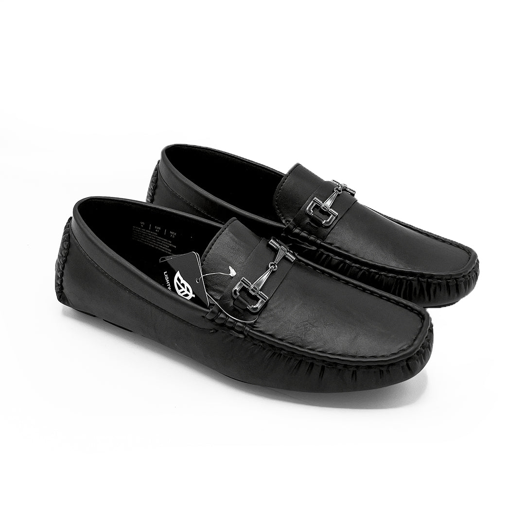 Designed for both style and comfort, these slip-ons feature a polished black leather upper and a cushioned insole, ensuring a comfortable fit throughout the day. The contemporary buckle detail adds a modern touch, making these shoes suitable for both casual and semi-formal settings.