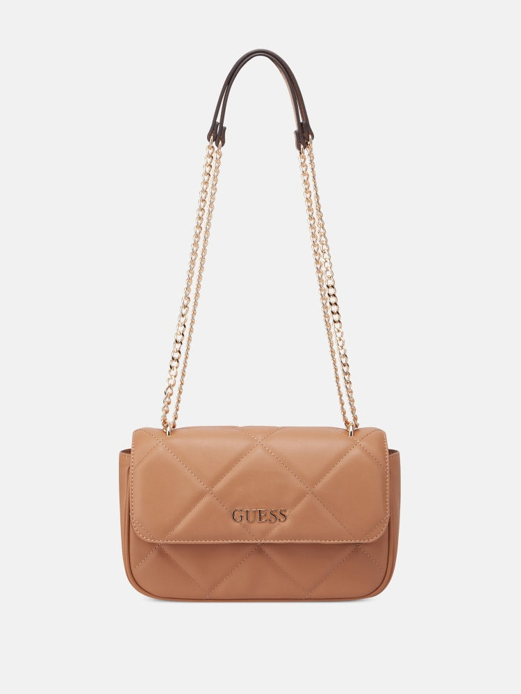 Details Diamond quilted faux-leather crossbody bag Rectangle silhouette Single-compartment construction Fold-over flap with emblem at front and...